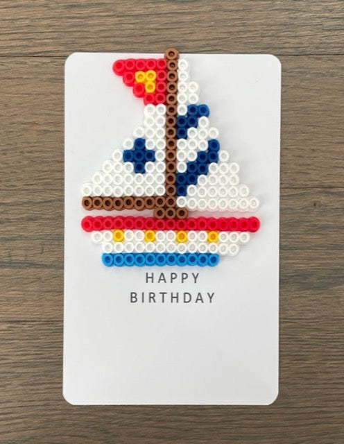 Wish someone happy birthday with this hancrafted, sailboat card. The card does not open.
